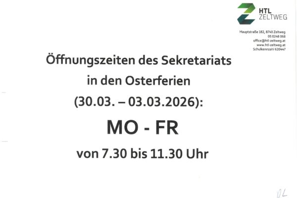Öffnungszeiten des Sekretariats in den Osterferien (30.03. – 03.03.2026) MO – FR von 7.30 bis 11.30 Uhr…