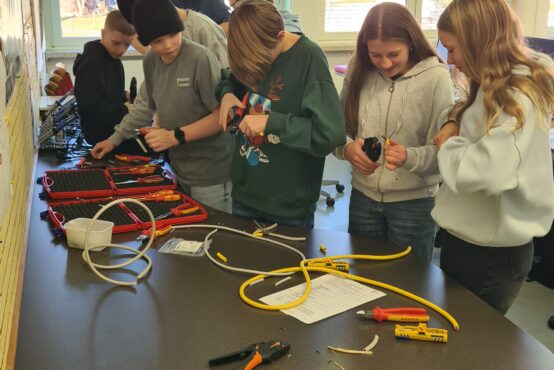 Im Zuge einer Kooperation der beiden MINT-Schulen MS-Pöls und HTL-Zeltweg fand am 15.12.2025 eine Technikeinheit in Pöls statt. Dabei beurteilten und ordneten die Schüler*innen gemeinsam mit den Fachlehrern Sebastian Kapotschi und Dietmar Horn unterschiedliche Kabel, Leitungen und Schutzarten hinsichtlich ihres Einsatzgebiets, ihres Aufbaus und ihrer Montage zu. Anschließend wurden mit geeignetem Werkzeug und Leitungsmaterial praktische Übungen durchgeführt. In weiteren zukünftigen Einheiten wird auf die erlernten Kompetenzen aufgebaut und diese weiterentwickelt.