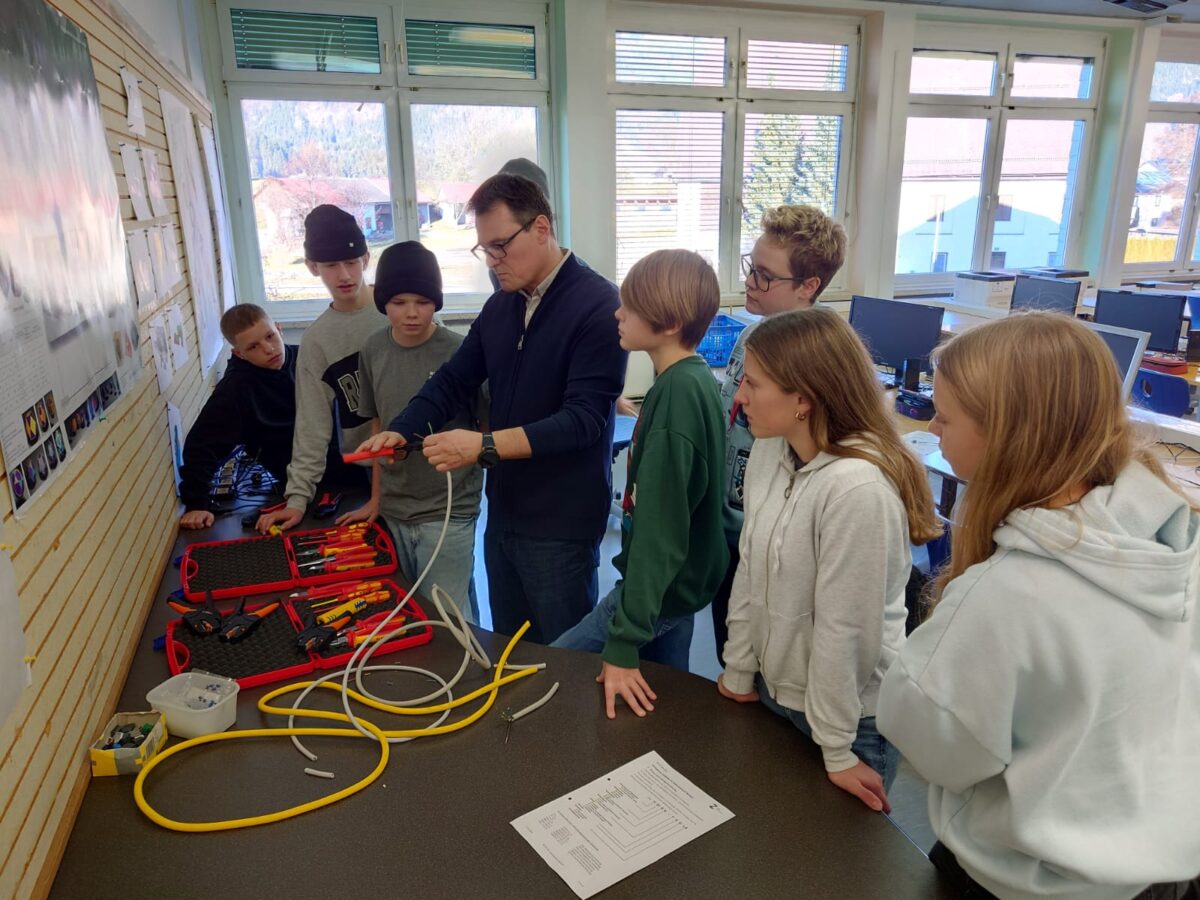 Im Zuge einer Kooperation der beiden MINT-Schulen MS-Pöls und HTL-Zeltweg fand am 15.12.2025 eine Technikeinheit in Pöls statt. Dabei beurteilten und ordneten die Schüler*innen gemeinsam mit den Fachlehrern Sebastian Kapotschi und Dietmar Horn unterschiedliche Kabel, Leitungen und Schutzarten hinsichtlich ihres Einsatzgebiets, ihres Aufbaus und ihrer Montage zu. Anschließend wurden mit geeignetem Werkzeug und Leitungsmaterial praktische Übungen durchgeführt. In weiteren zukünftigen Einheiten wird auf die erlernten Kompetenzen aufgebaut und diese weiterentwickelt.