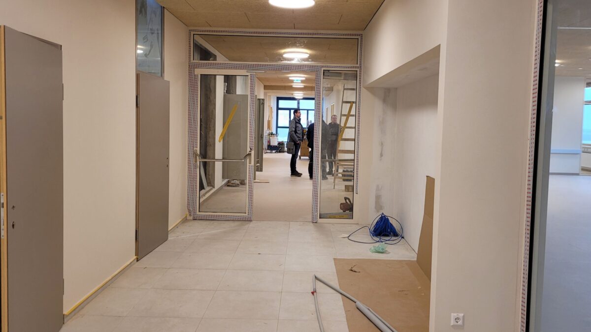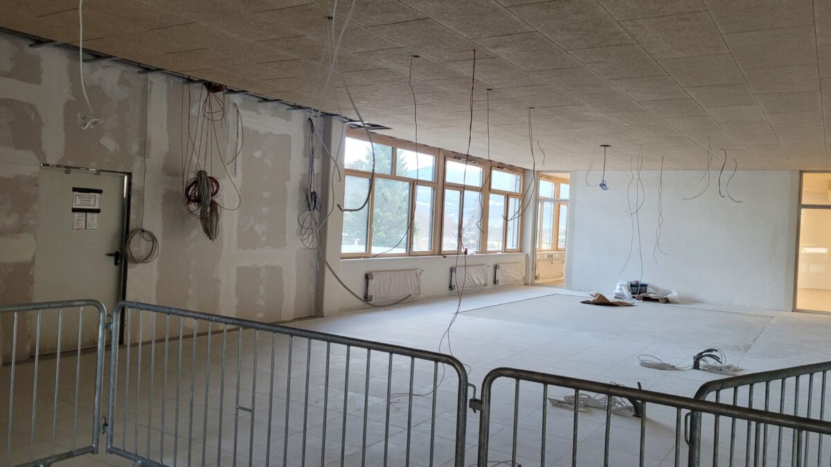 Während in den Herbstferien weiter an der Neugestaltung gearbeitet wurde, herrschte auf den bereits fertiggestellten Flächen Ruhe. Aktuell läuft Bauphase 3: Im ersten Obergeschoss betrifft das den westlichen und südlichen Trakt, im Erdgeschoss wird der Veranstaltungsraum vollendet. Noch ausstehend sind Bodenverlegung, Türen, Tischlerarbeiten, Elektrik und Möblierung. Die neuen Bereiche sollen nach den Weihnachtsferien bezugsfertig sein – der Zeitplan wird weiterhin konsequent verfolgt.