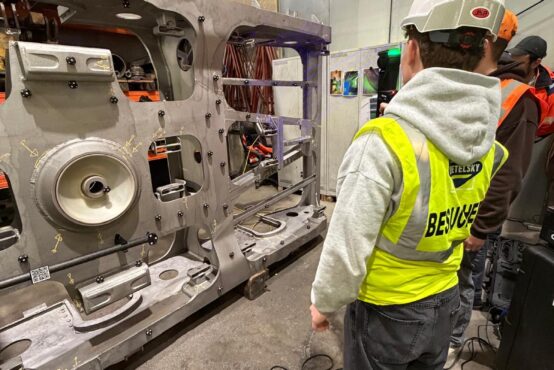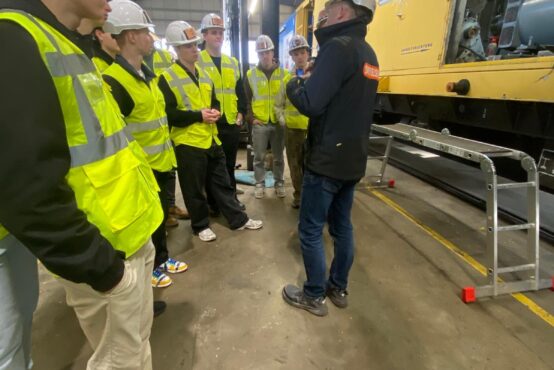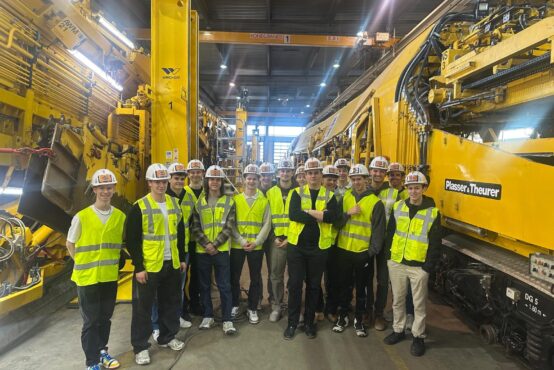 Der erste Programmpunkt führte uns zur Firma Swietelsky. Dort erhielten wir detaillierte Einblicke in die Fertigung sowie in verschiedene Prüfverfahren, die zur Qualitätssicherung im Gleisbau eingesetzt werden. Besonders beeindruckend war die mehrere hundert Meter lange Maschine zur Revision der Gleise und des Unterbaus. Diese hochkomplexe Anlage zeigt eindrucksvoll, wie moderne Technik eingesetzt wird, um Infrastruktur effizient zu warten und nachhaltig zu erneuern. Für die Schülerinnen und Schüler war es besonders spannend, theoretisches Wissen aus dem Unterricht in einem realen industriellen Umfeld wiederzufinden.