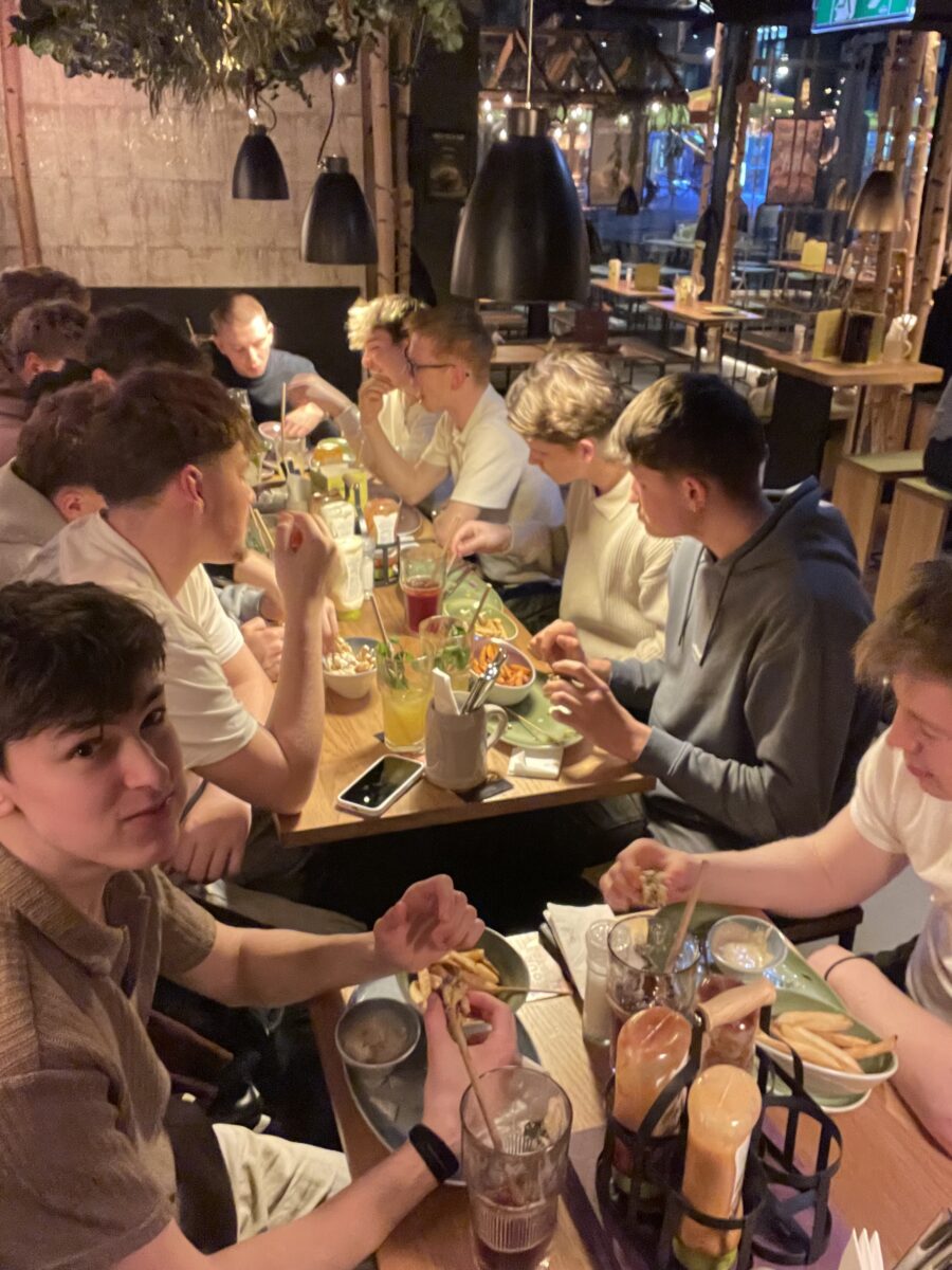 Neben dem fachlichen Programm spielte auch das Teambuilding eine wichtige Rolle. Beim gemeinsamen Burger-Essen am Abend konnten die Erlebnisse des Tages reflektiert und in entspannter Atmosphäre Gespräche geführt werden. Solche gemeinsamen Aktivitäten stärken nicht nur den Zusammenhalt innerhalb der Klasse, sondern fördern auch Kommunikation und Teamgeist.